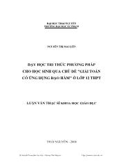 DownloadLuận văn Dạy học tri thức phương pháp cho học sinh qua chủ đề “giải toán có ứng dụng đạo hàm” ở lớp 12 THPT