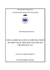 DownloadLuận văn Nâng cao hiệu quả công tác kiểm tra, thanh tra thuế tại cục thuế nước cộng hòa dân chủ nhân dân Lào