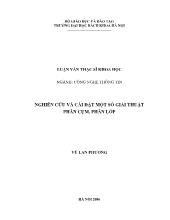 DownloadLuận văn Nghiên cứu và cài đặt một số giải thuật phân cụm, phân lớp