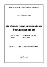 DownloadTóm tắt luận án Vấn đề giữ gìn và phát huy di sản văn hóa ở thừa thiên huế hiện nay