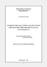DownloadTóm tắt luận án Tạo dòng chịu hạn và phân lập gen cystain liên quan đến tính chịu hạn ở cây lạc