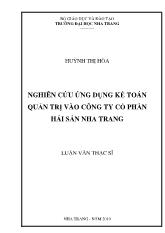 DownloadLuận văn Nghiên cứu ứng dụng kế toán quản trị vào công ty cổ phần hải sản Nha Trang