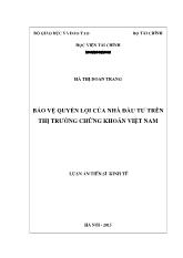 DownloadLuận án Bảo vệ quyền lợi của nhà đầu tư trên thị trường chứng khoán Việt Nam