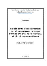 DownloadLuận án Nghiên cứu biểu hiện protein tái tổ hợp miraculin trong dòng tế bào BY2, rễ tơ thuốc lá và cây cà chua chuyển gen