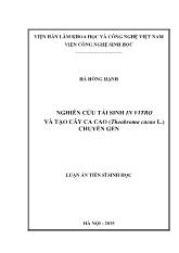 DownloadLuận án Nghiên cứu tái sinh in vitro và tạo cây ca cao (Theobroma cacao L.) chuyển gen
