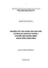 DownloadLuận án Nghiên cứu tạo dòng cây dưa hấu (Citrulus lanatus Thumb.) chuyển gen kháng bệnh virus đốm vòng PRSV