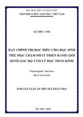 DownloadTóm tắt Luận án Dạy chỉnh trị đọc hiểu cho học sinh tiểu học chậm phát triển ranh giới dưới góc độ tâm lý học thần kinh