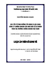 DownloadLuận án Các yếu tố ảnh hưởng tới hành vi lựa chọn công ty chứng khoán của nhà đầu tư cá nhân trên thị trường chứng khoán Việt Nam