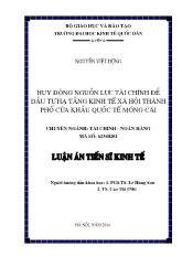 DownloadLuận án Huy động nguồn lực tài chính để đầu tư hạ tầng kinh tế xã hội thành phố cửa khẩu quốc tế Móng Cái