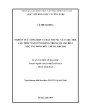 Trong những năm gần đây, các hạt kim loại nano đã thu hút đư c nhiều sự quan tâm của các nhà khoa học trong và ngoài nước bởi những tính chất đặc biệt hơn hẳn so với vật liệu...