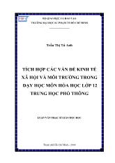 DownloadLuận văn Tích hợp các vấn đề kinh tế xã hội và môi trường trong dạy học môn hóa học lớp 12 trung học phổ thông