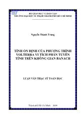 DownloadLuận văn Tính ổn định của phương trình volterra vi tích phân tuyến tính trên không gian banach