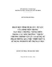 DownloadLuận văn Phát huy tính tích cực, tự lực của sinh viên trong dạy học chương “dòng điện trong các môi trường” thuộc chương trình vật lý cao đẳng sư phạm thông qua việc thiết kế và sử dụng website hỗ trợ dạy học