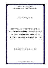 DownloadThực trạng sử dụng “bộ chuẩn phát triển trẻ em năm tuổi” trong tổ chức hoạt động phát triển thể chất cho trẻ mẫu giáo 5 – 6 tuổi