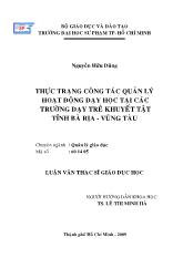 DownloadLuận văn Thực trạng công tác quản lý hoạt động dạy học tại các trường dạy trẻ khuyết tật tỉnh Bà Rịa – Vũng Tàu