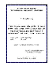 DownloadLuận văn Thực trạng công tác quản lý hoạt động giảng dạy môn tin học tại các trường trung học phổ thông ở thành phố Mỹ Tho, tỉnh Tiền Giang
