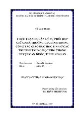 DownloadLuận văn Thực trạng quản lý sự phối hợp giữa nhà trường-Gia đình trong công tác giáo dục học sinh ở các trường trung học phổ thông huyện Cần Đước, tỉnh Long An