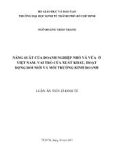 DownloadLuận án Năng suất của doanh nghiệp nhỏ và vừa ở Việt Nam: vai trò của xuất khẩu, hoạt động đổi mới và môi trường kinh doanh