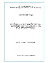 DownloadLuận án Truyền dẫn lãi suất bán lẻ ở Việt Nam: các thay đổi cấu trúc và hành vi của ngân hàng thương mại