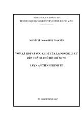 DownloadLuận án Vốn xã hội và sức khoẻ của lao động di cư đến thành phố Hồ Chí Minh