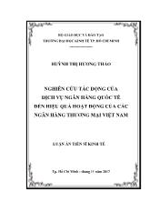 DownloadNghiên cứu tác động của dịch vụ ngân hàng quốc tế đến hiệu quả hoạt động của các ngân hàng thương mại Việt Nam