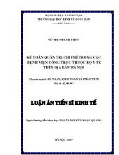 DownloadLuận án Kế toán quản trị chi phí trong các bệnh viện công trực thuộc bộ y tế trên địa bàn Hà Nội