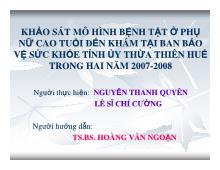 DownloadKhóa luận Khảo sát mô hình bệnh tật ở phụ nữ cao tuổi đi đến khám tại ban bảo vệ sức khỏe tỉnh ủy thừa thiên huế trong hai năm trong hai năm 2007-2008
