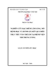 DownloadLuận án Nghiên cứu đặc điểm lâm sàng, mô bệnh học và đánh giá kết quả điều trị u tiểu não trẻ em tại bệnh viện nhi Trung Ương