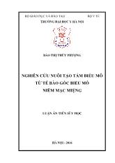 DownloadLuận án Nghiên cứu nuôi tạo tấm biểu mô từ tế bào gốc biểu mô niêm mạc miệng
